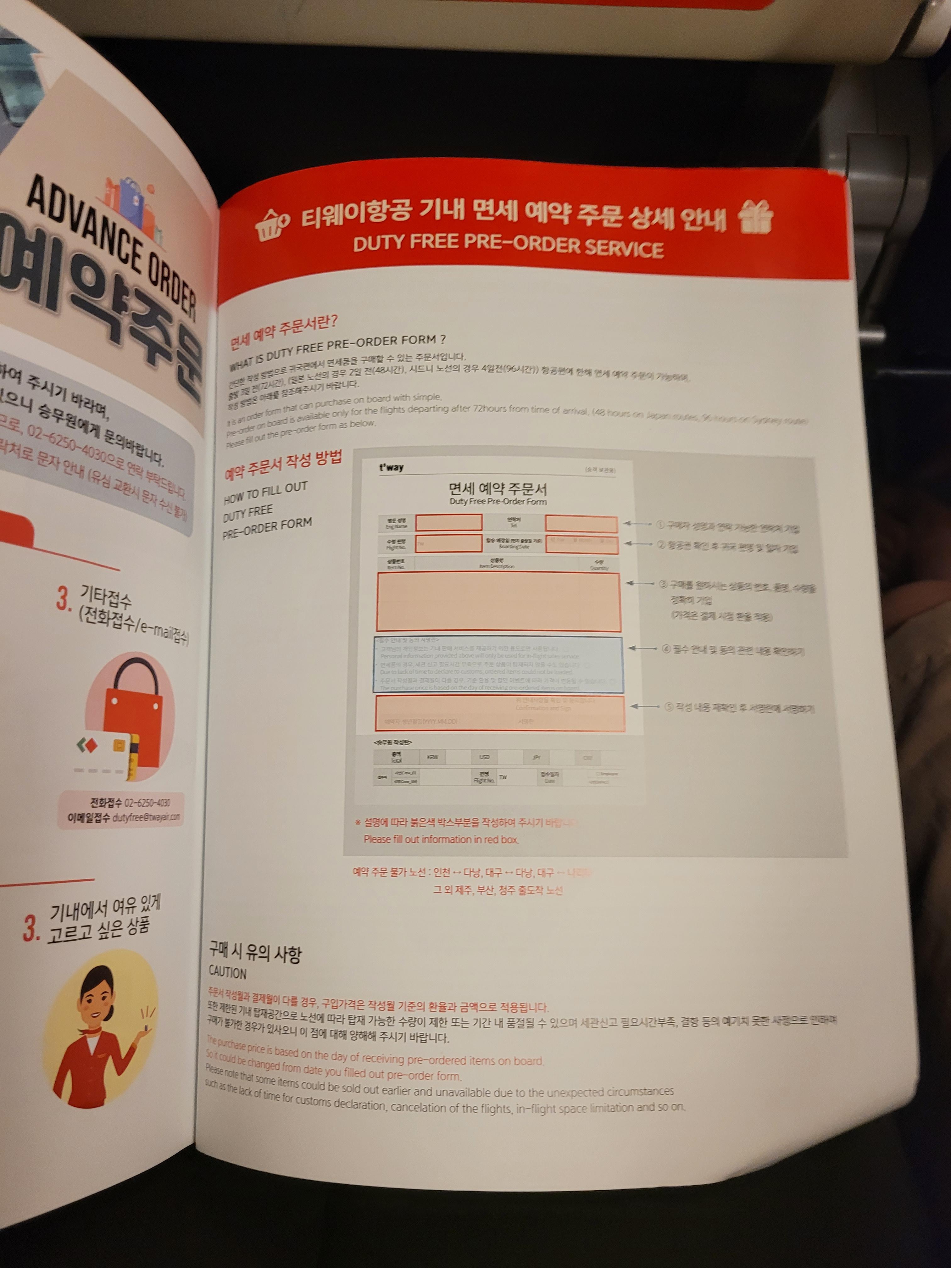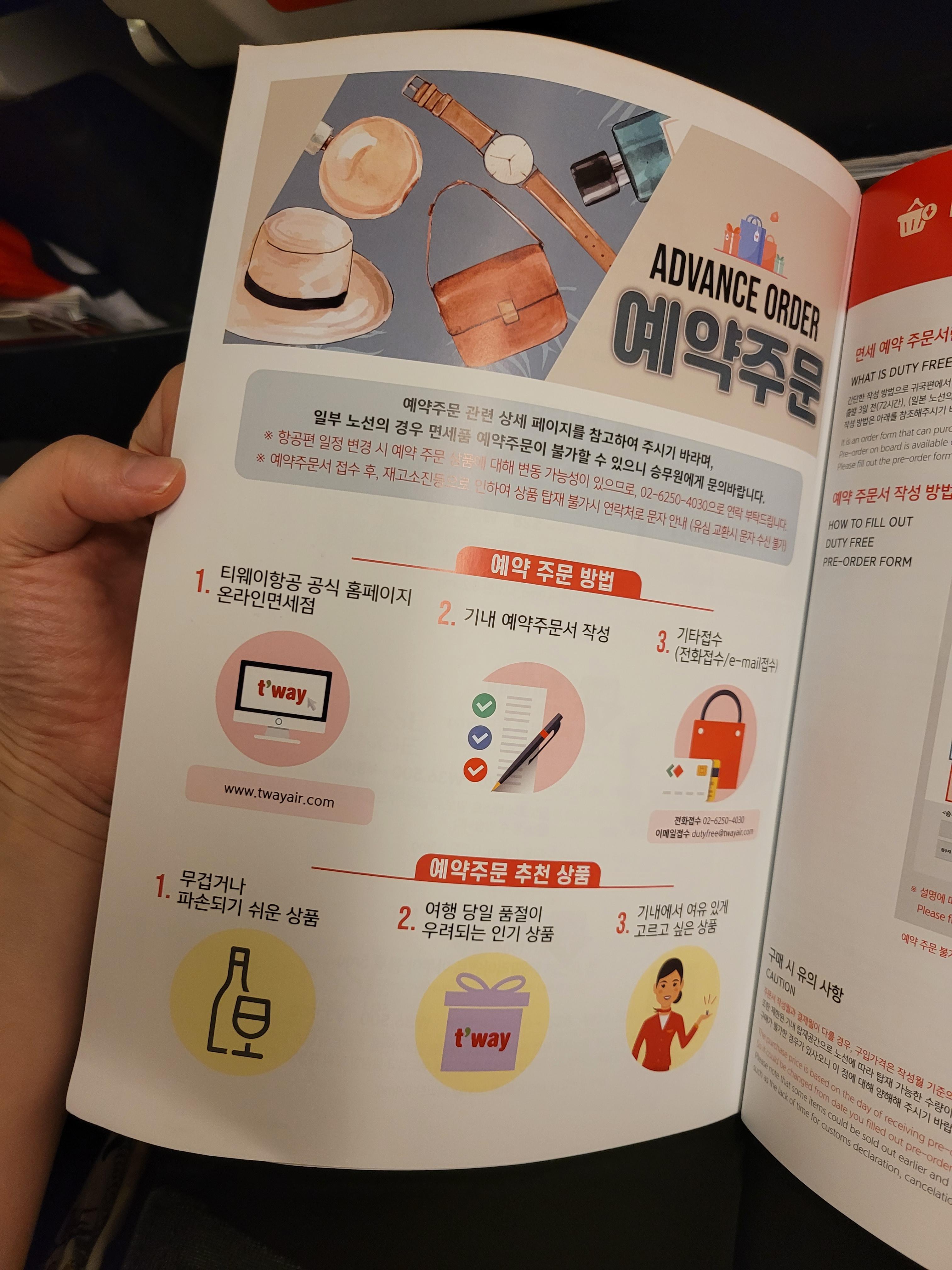 오늘은 티웨이 항공 좌석 내에있는 기내 면세점 정보를 다뤄볼까해요