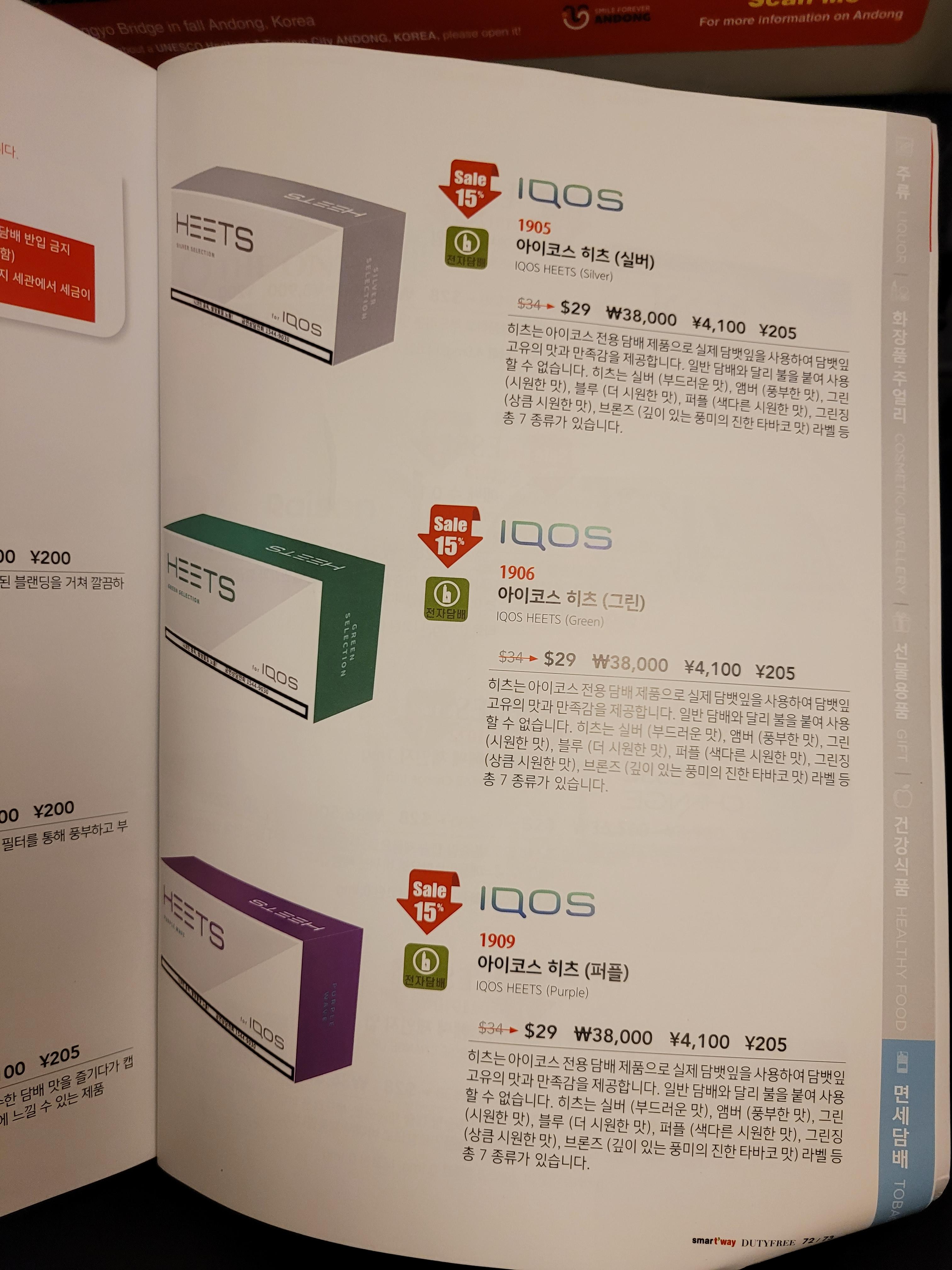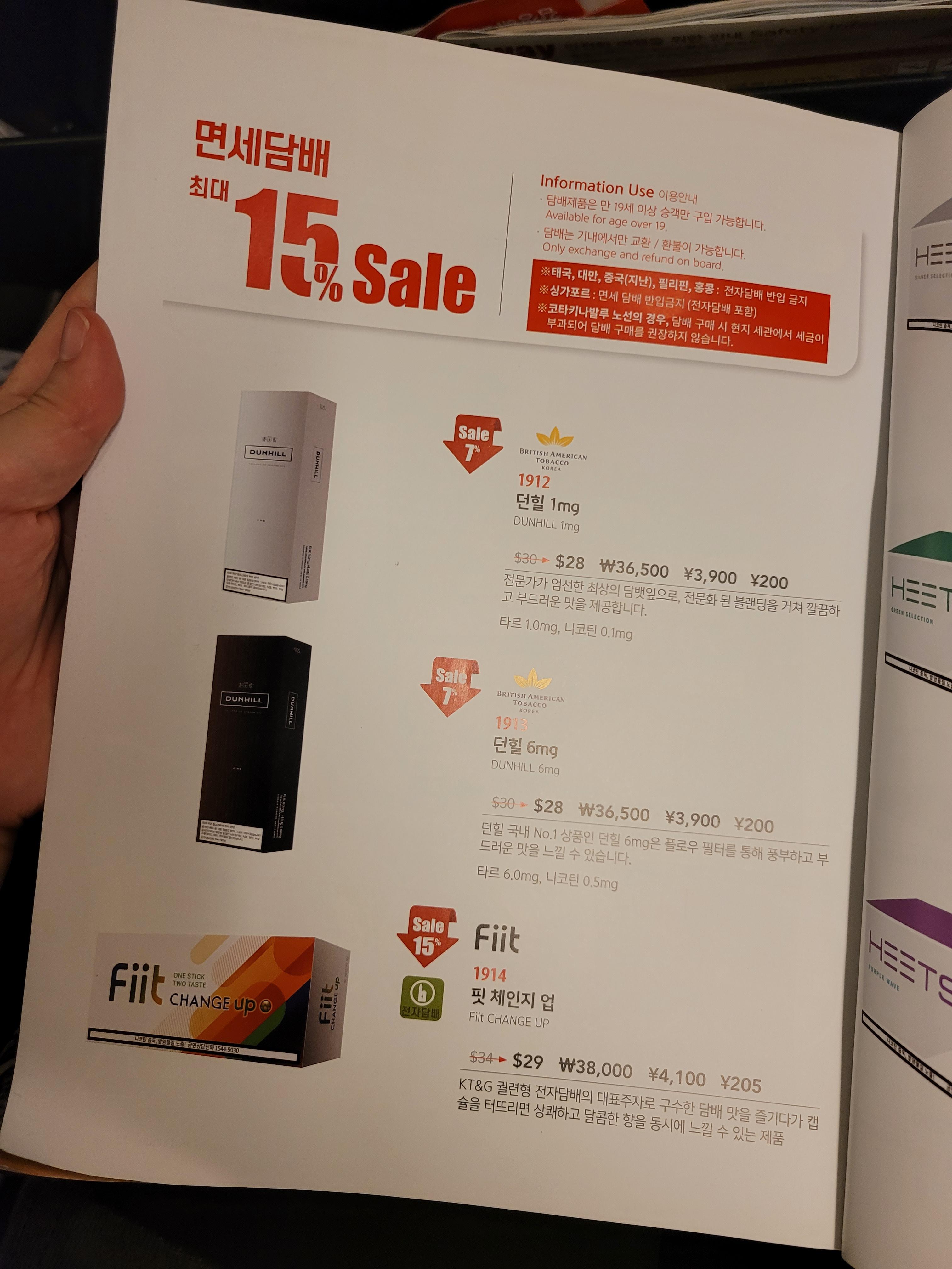 기내 면세점 담배 가격도 매력적입니다!