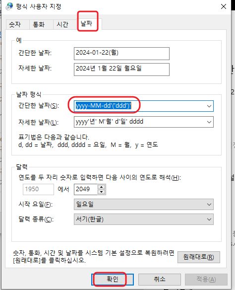 윈도우10 날짜 형식 요일나오게 변경하기! (window10 날짜 요일)