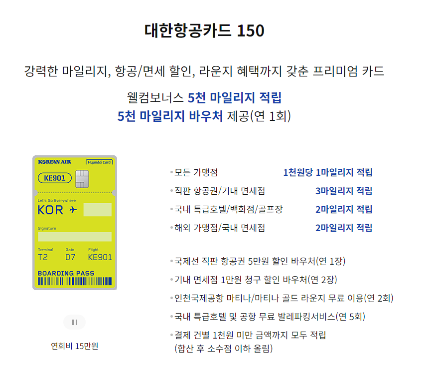 현대카드 대한항공 마일리지 150
