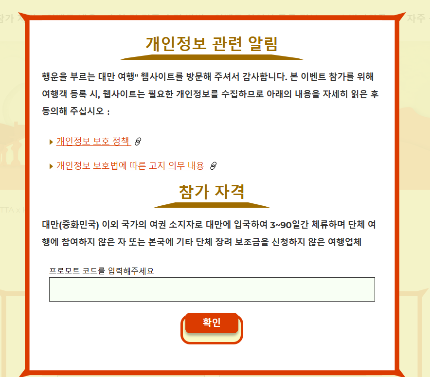링크를 따라 들어간 후 프로모션 코드를 입력하고 여권정보를 적습니다.