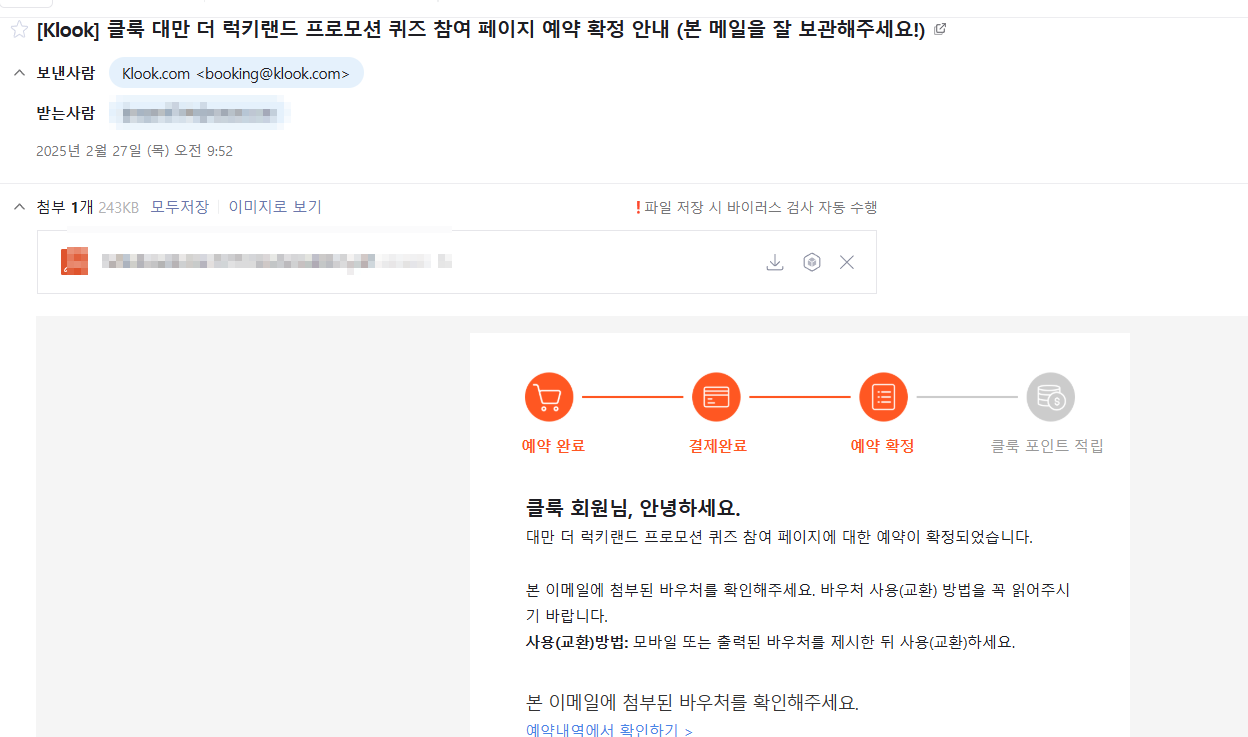 호텔 쿠폰 사용ㅇ르 위한 마지막 단계가 남았어요 라는 메일이 옵니다