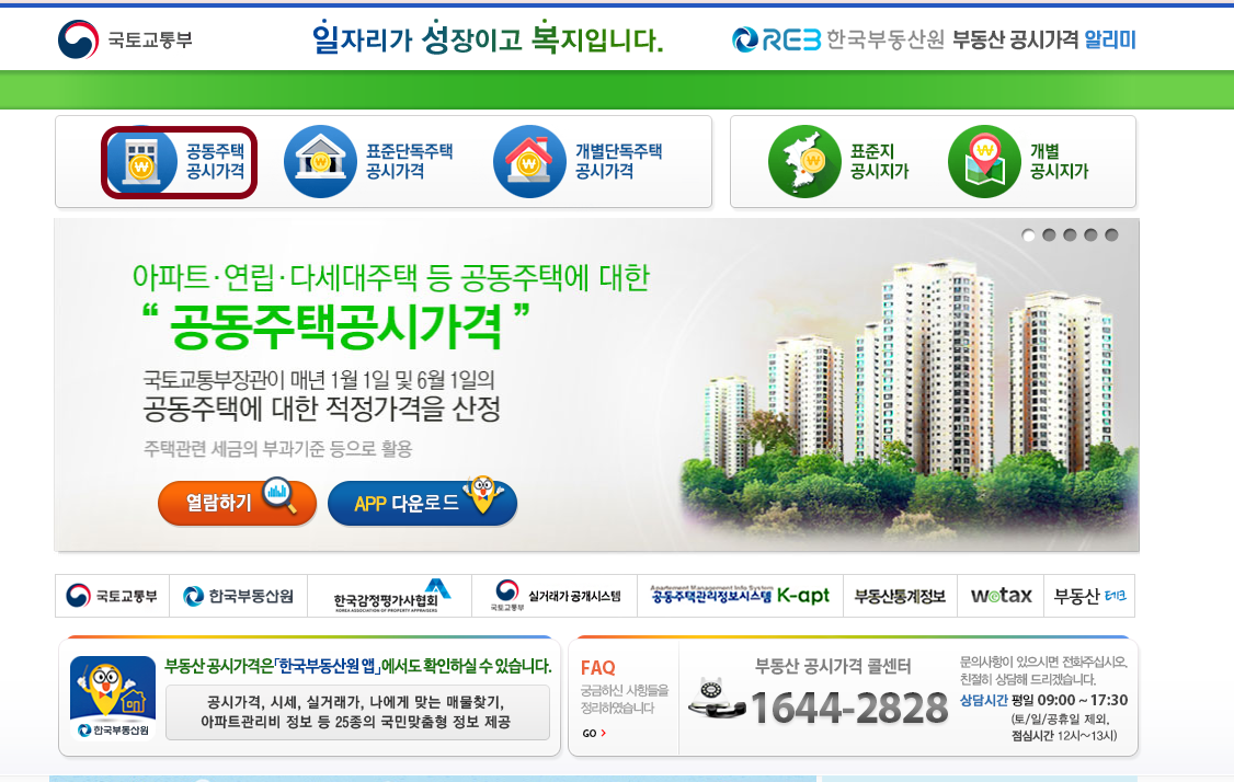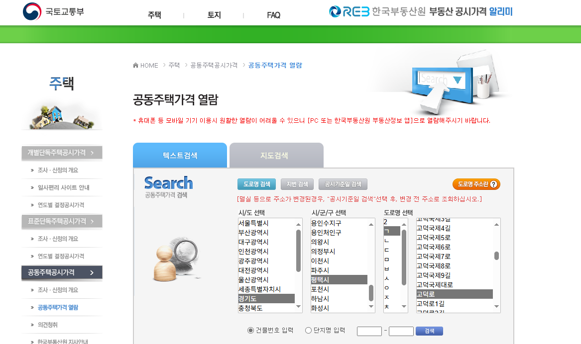 - 공동주택은 아파트, 단독주택은 개별주택가격을 선택