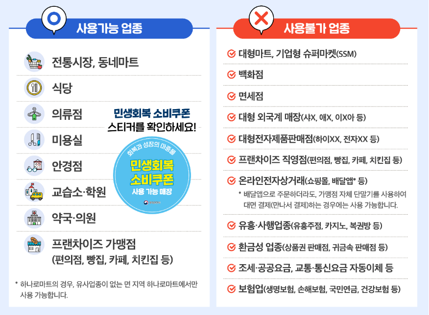 근데 여기는 안돼요! 🙅♀️ 큰 마트(이마트, 홈플러스 등), 백화점, 면세점, 온라인 쇼핑몰, 유흥주점, 큰 프랜차이즈 직영점 같은 곳은 안된대요. 아, 물론 농촌에 있는 일부 농협 하나로마트는 된다고 하니 참고하세요! ㅎㅎㅎ